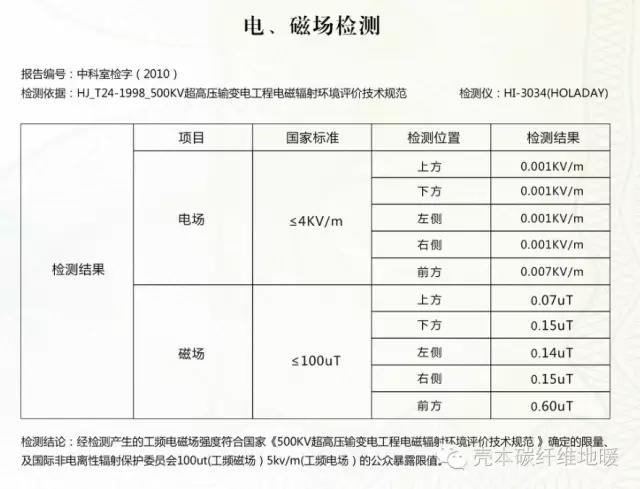 通過上表出自專業(yè)機(jī)構(gòu)的電磁場檢測報(bào)告,我們可以看到殼本地暖電場和磁場兩項(xiàng)標(biāo)準(zhǔn)遠(yuǎn)遠(yuǎn)小于標(biāo)準(zhǔn)的千分之一不到。比日常生活家用電器都要小很多很多。真不知道,造謠者,為什么不說看電視會(huì)得白血病、癌癥呢?